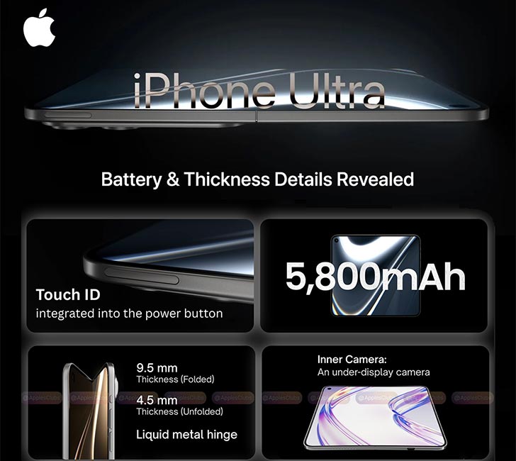 We have heard reports saying the iPhone Fold/Ultra is built around a 5800mAh cell. It’s obviously bigger than the 4400mAh Galaxy Z Fold 7. But it’s also a bit higher than the 5600mAh Galaxy Z TriFold, which, by the way, splits the battery into three pieces. It’s turning out to be a well-designed foldable. Keep watching the news for more updates.
