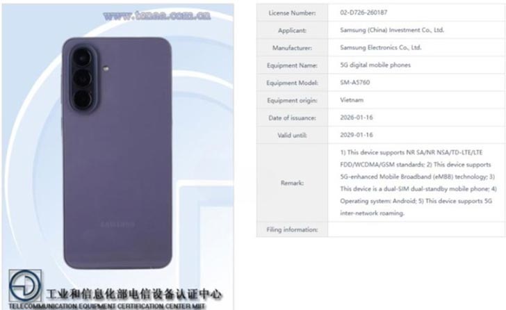 TENAA usually provides renders of the phones it lists in the database, though it sometimes takes a while. We found the Samsung Galaxy A57 on TENAA last week. Most of its specs were exposed by this Chinese authority. And now they’ve updated the same listing with Galaxy A57 renders.