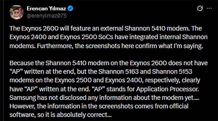 You may already know by now that Galaxy S26 and S26+ will grab Samsung’s own Exynos 2600 chip. That’s only happening in South Korea, by the way. The rest of the stock for the global market will use Snapdragon. A new leak has confirmed that Exynos 2600 doesn’t have a built-in network chip, which raises concerns over power efficiency on the Galaxy S26 series.