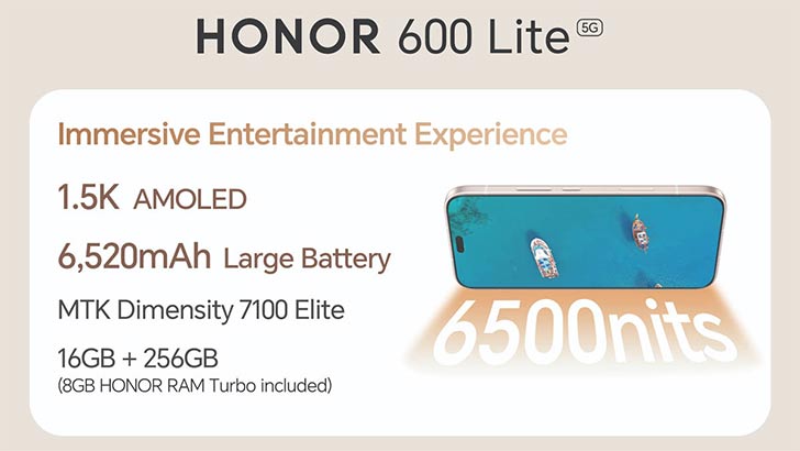 The SoC running everything on the Honor 600 Lite is the Dimensity 7100 Elite. That also turns this newcomer into a 5G device. This is a 6nm chip, by the way, and its clock speed is 2.4GHz. The GPU is integrated Mali-G610 MP2. It’s decent enough for gaming and CPU-heavy tasks, but not at the same level as flagships.