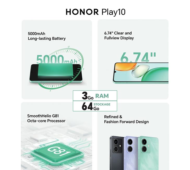 The Honor Play 10 is a budget LTE device. It gives you a Helio G81 chip with 3GB base RAM and 64GB of storage. The hardware is too weak to keep up with the standard Android 15 OS. So, the company chose to give this device a lighter Android 15 Go OS. This firmware is less resource-intensive.