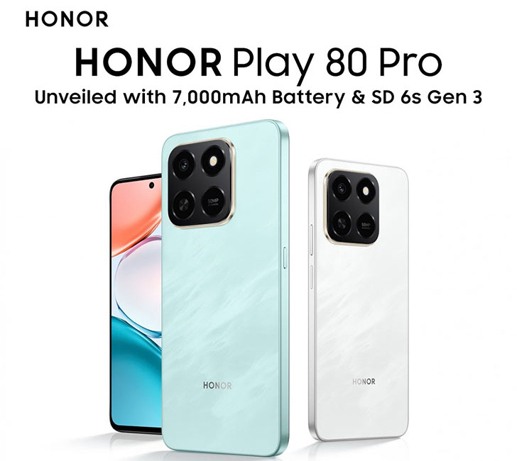 Honor Play 80 Pro takes the storage and RAM all the way up to 12GB/256GB. But the OS is the older Android 15 with MagicOS 9. Its fingerprint reader is on the side. The rear camera is a 50MP shooter that can do 1080p videos. The base Honor Play 80 Pro has 6GB+256GB storage, and it costs CNY 1,899 (~$275) (~PKR 77,000).