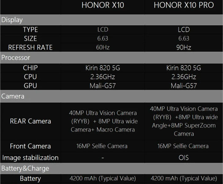 The 5G-powered processor is paired with 6GB of RAM and up to 128GB of storage in Honor X10, while the Pro edition features 8GB of memory and up to 256GB of onboard storage.