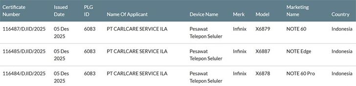 The Hot 60 series was unveiled a while back, but the premium Note 60 lineup is still missing from the big picture. The phones are getting closer, though. We just found a bunch of new listings on Indonesia’s SDPPI database, and among them, there were devices tagged Infinix Note 60 Pro, a basic Note 60, and an oddity with the moniker Note Edge.