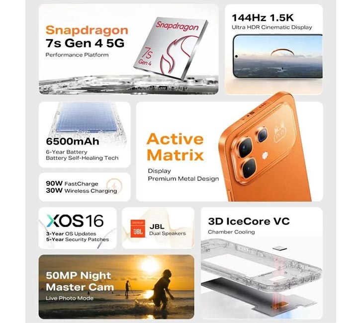 Infinix Note 60 Pro is built around a 6.78” OLED. The motion rate is 144Hz. It seems to have a standard 1.5K resolution, which is definitely sharp enough for the size. The local peak brightness hits 4,500 nits. Gorilla Glass 7i keeps it from damage. PWN dimming should help people with sensitive eyes.