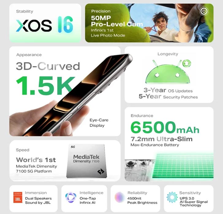 This is the phone that brings its first official (out of the box) Android 16 XOS 16 operating system. And yes, they had teased 3 years of OS support, and Note Edge now confirmed it again. Five years of Security patches will also be seen down the road, but it won’t be as frequent as Samsung’s updates. Based on January 2026 data, here is the latest Infinix Rate list of new and old models that you can check out.