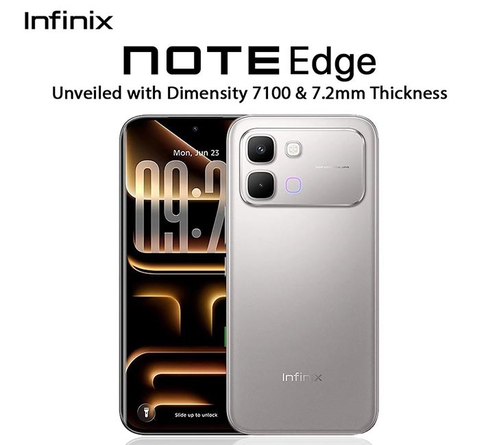 Infinix Note Edge’s teaser spree was rather short-lived. But the phone is now official, and it has the same Dimensity 7100 chip that was promised by those earlier leaks. They put a lot of thought into its design and made it look premium. It may be their thinnest 6500mAh build yet.