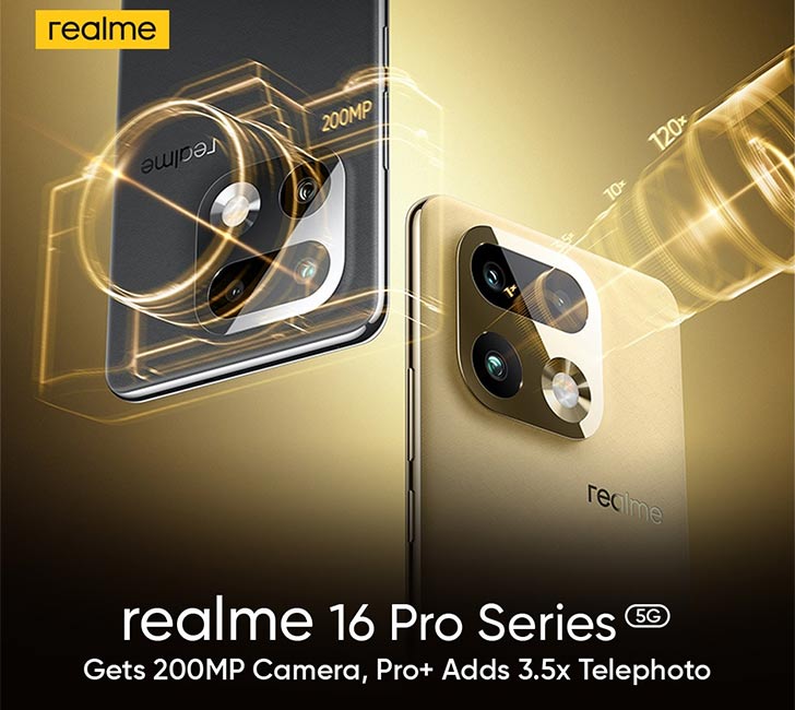 The Pro+ variant was absent from the last Realme series. But the Realme 16 Pro Plus will make up for it with at least two generations’ worth of camera upgrades. Realme 16 Pro is positioned right next to it with a matching Main camera. They are both officially teased with optical specs and the launch date.