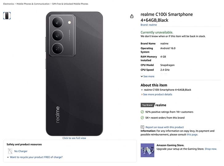 Realme hasn’t actually announced the C100i yet. But vendors on Amazon Spain, Australia, Italy, and even France have already received the Realme C100i stock. That’s probably why we are seeing official-looking product pages in so many regions.