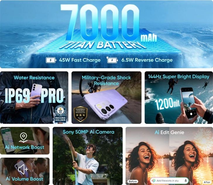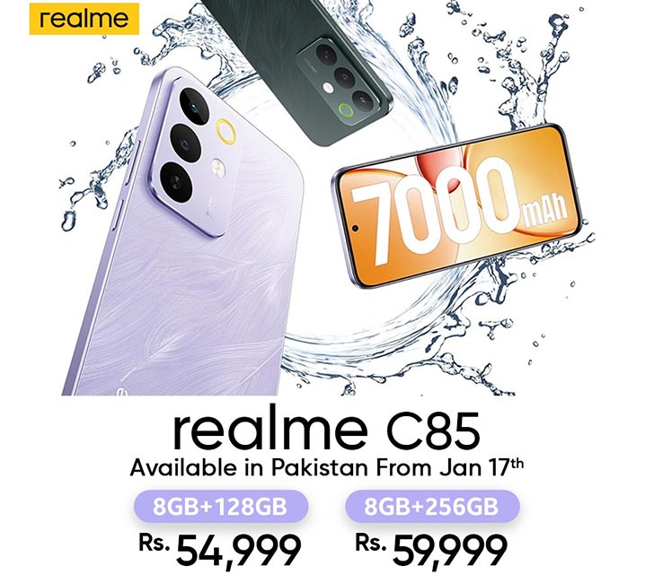 The design here looks exactly like the Realme C85 Pro that arrived in Pakistan two months ago. The company has announced the vanilla Realme C85 for the Pakistani market today, which has a 7000mAh Titan battery with an IP69 Pro Resistance to liquids. They’ll deploy this phone in our market five days from now.