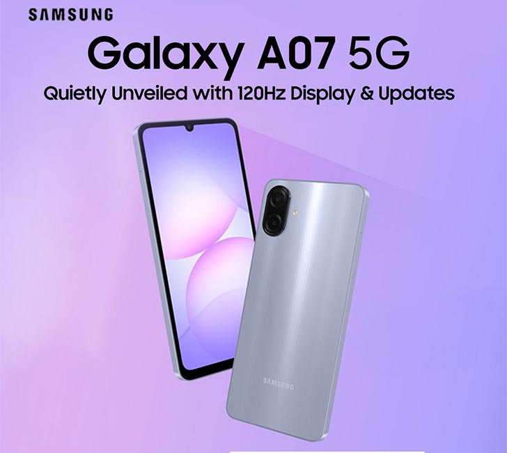 The older Galaxy A06 had a 5G version last time. And the trend continues with the Galaxy A07 as well. They’ve silently launched the Samsung Galaxy A07 5G variant in Myanmar. There seems to be a Dimensity 6300 chip inside. Most of its other specifications are the same as the original A07 LTE.