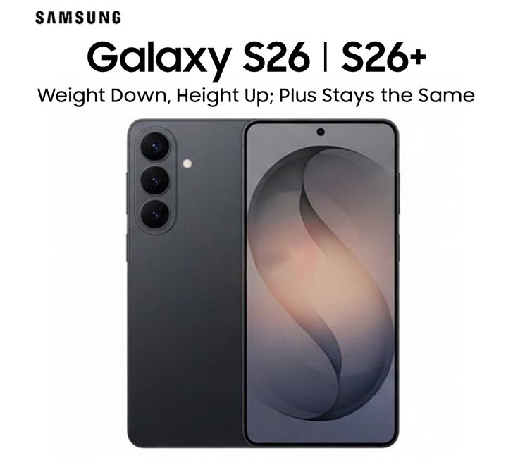 The S26+ is still 7.3mm thin. It’s built around a 6.7” AMOLED. 158.5mm length is mentioned in the leak with 75.8mm width. And the weight is also kept consistent at 190 grams. And those wondering about the battery should know that it’s still 4,900 mAh on the Galaxy S26+.