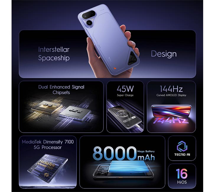 Anyway, the phone’s durability is rated IP64 with drop safety (1.5m). There’s dual-band WiFi, only one speaker, and an IR port on its frame. The starting price of Pova Curve 2 5G is ~$310 (~PKR 86,000) for the base 8/128GB trim. But the upgrade path leads you to the 8/256GB option ~$330 (~PKR 92,000).