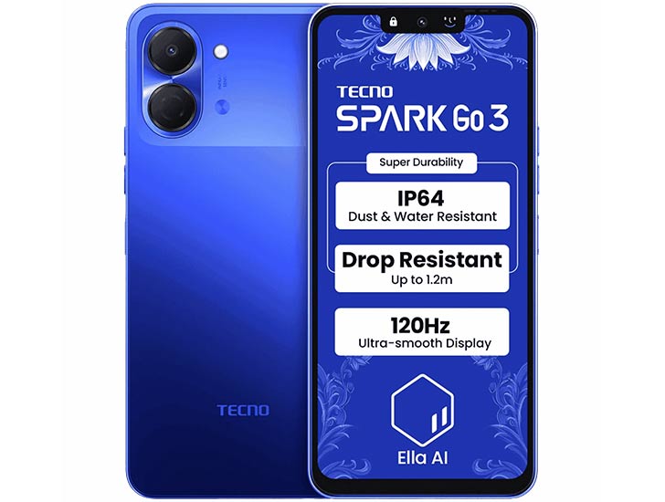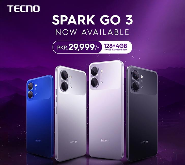 The TECNO Spark Go 3 is launched locally and is now available nationwide, across Pakistan. The newcomer comes in a single variant of 4GB + 128GB, priced at Rs. 29,999. You can buy this phone in Aurora Purple, Galaxy Blue, Ink Black, and Titanium Grey color trims.