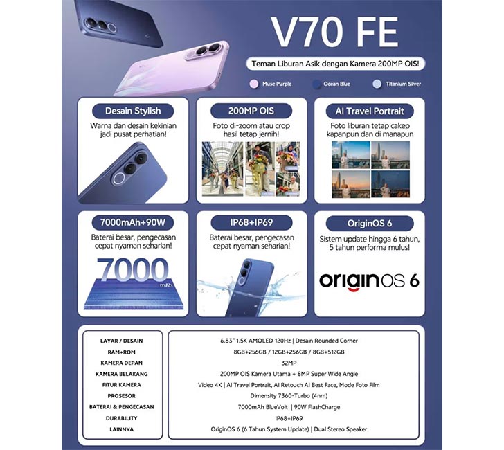 The phone’s teaser on X was only meant to reveal the design. It has thin bezels and rounded corners, just an overall ergonomic build. There were no specifications in the video. There were no specifications in the video, though the clip does end on the V70 FE’s official banner, which says 200MP camera.