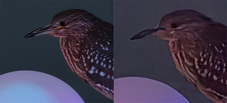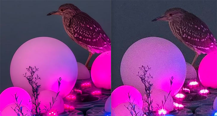 Samsung’s S25 Ultra is taking quite a beating from the Vivo X300 Pro in these camera shots. This is a low-light scenario, so it’s really challenging for both phones to handle. The shots of this bird were taken at 10x and 35x zoom from both their periscope cameras.