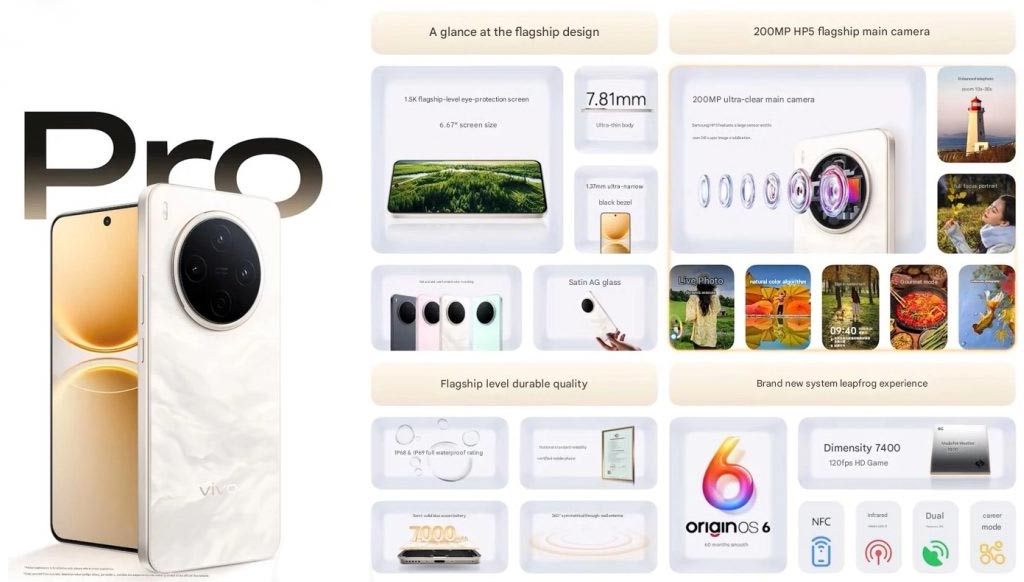 Y400 Pro used a 50MP Main unit, but the new Y500 Pro model bumps it up to 200MP. And yes, it’s the rumored Samsung ISOCELL HP5 sensor bound with OIS and AutoFocus. The other rear cameras are only for show. They just wanted to match the phone’s appearance with the X300 series.