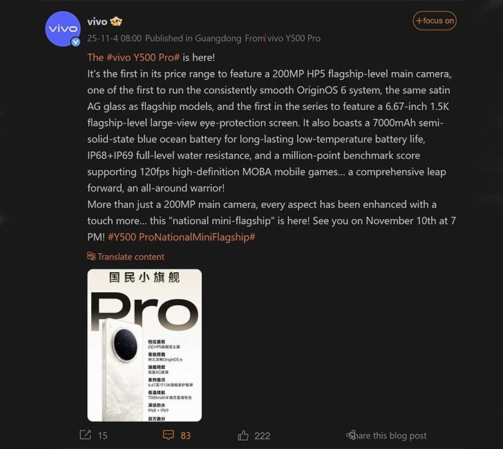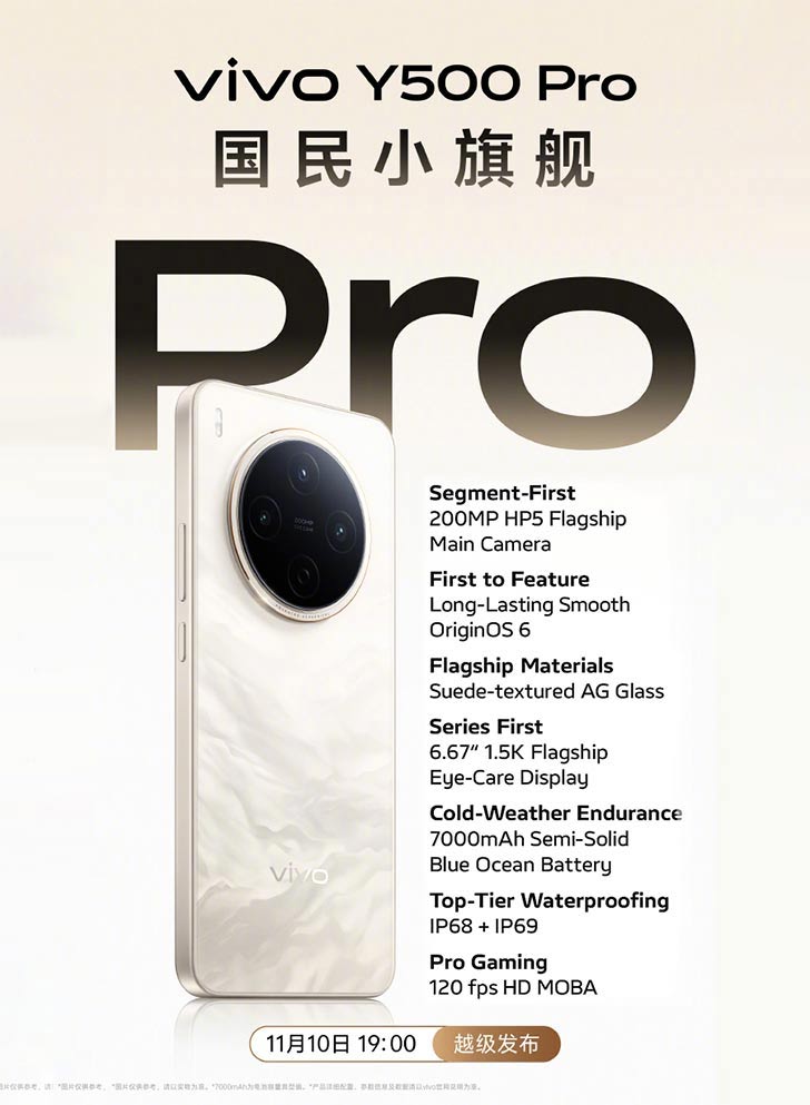 The last bit of detail we found in this early listing is an official IP69/IP68 water and dust-safety rating. They didn’t say anything about the price. But we did learn that its official launch date is November 10. We’ll do a full coverage for Vivo Y500 Pro when it debuts, so keep watching the news.